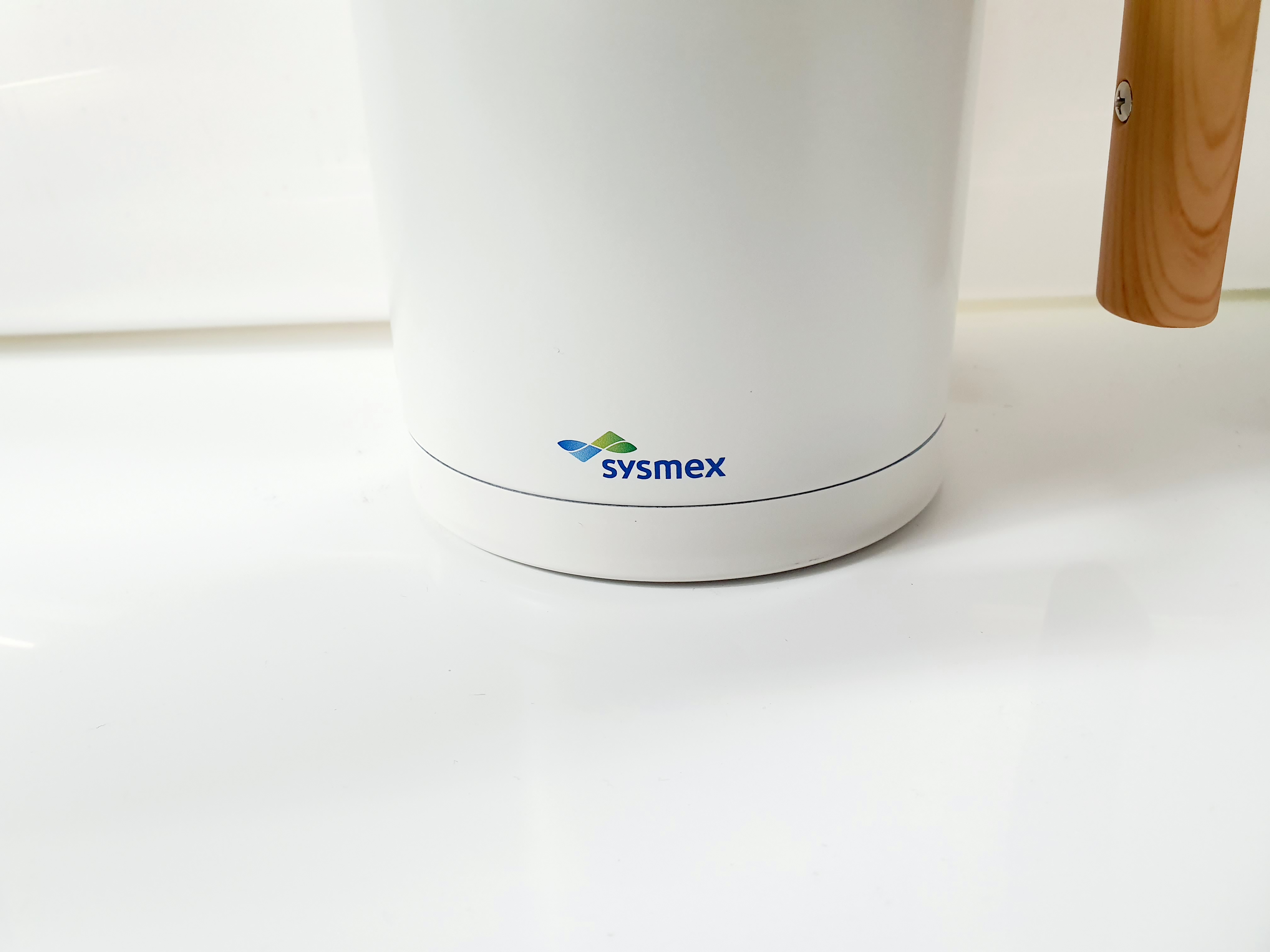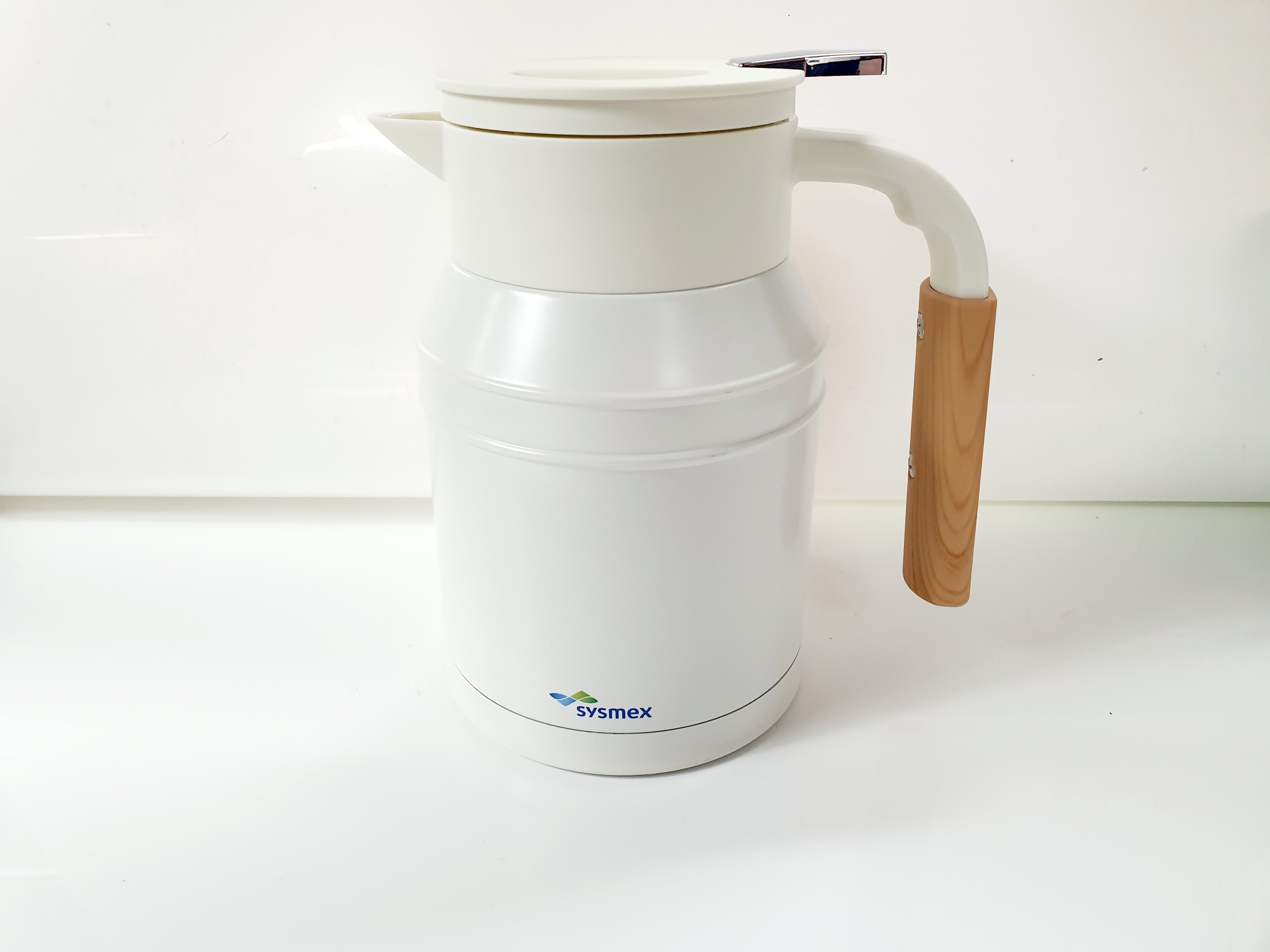 흰색의 주전자형 보틀에 시스멕스사 로고를 인쇄한 디자인입니다.