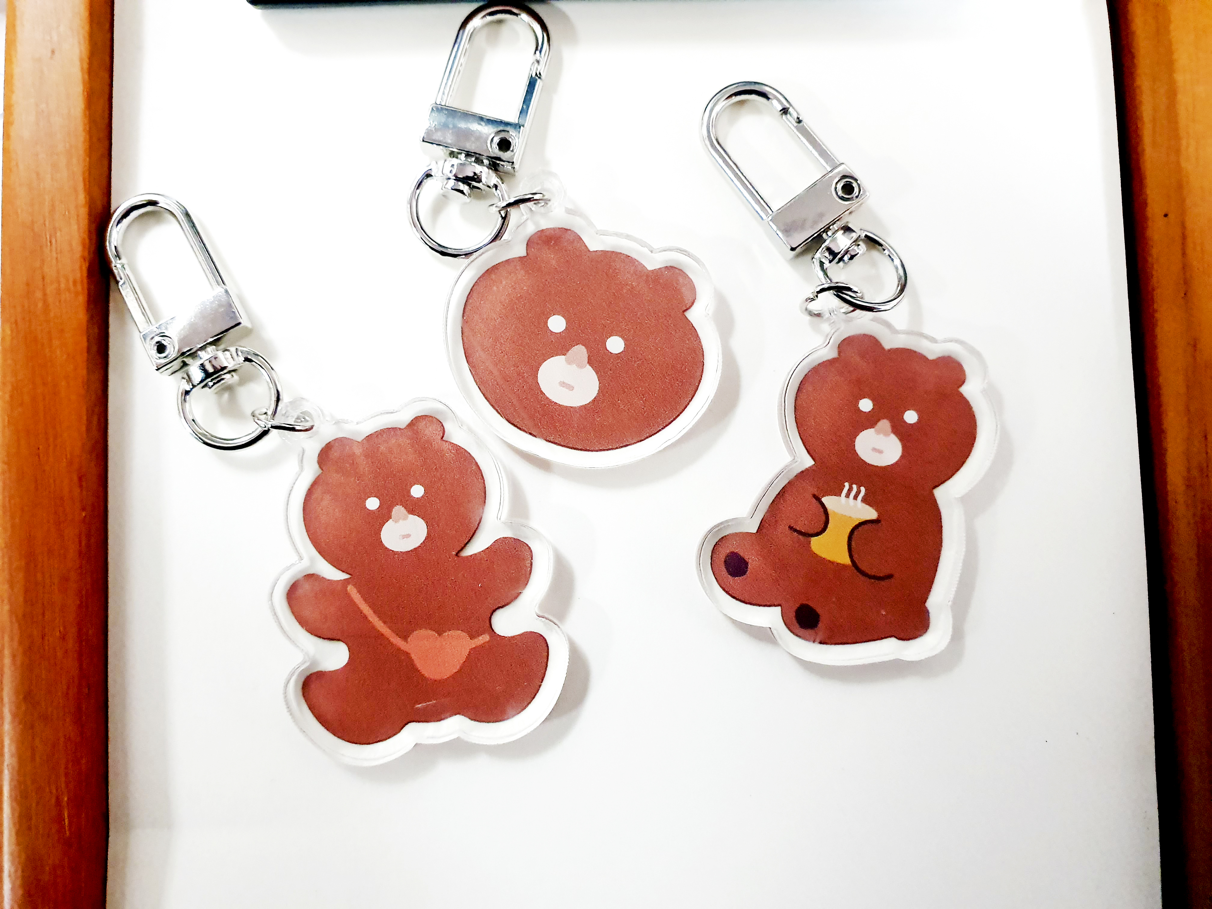 오늘 보여드릴 제품은 곰돌이 일러스트가 그려진 아크릴 키링이에요.