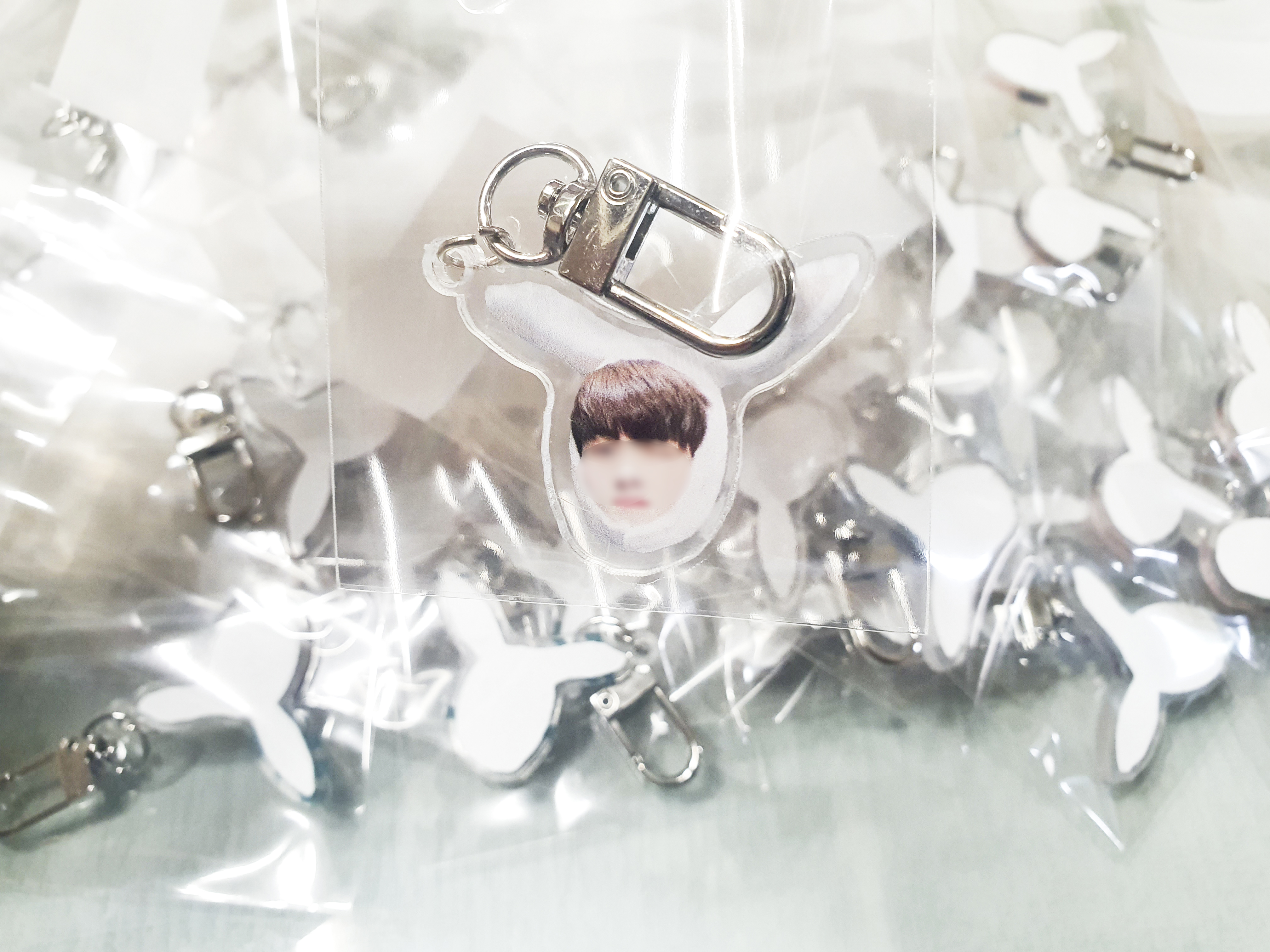 오늘 보여드릴 제품은 아이돌의 얼굴을 따서 제작한 아크릴 키링이에요.