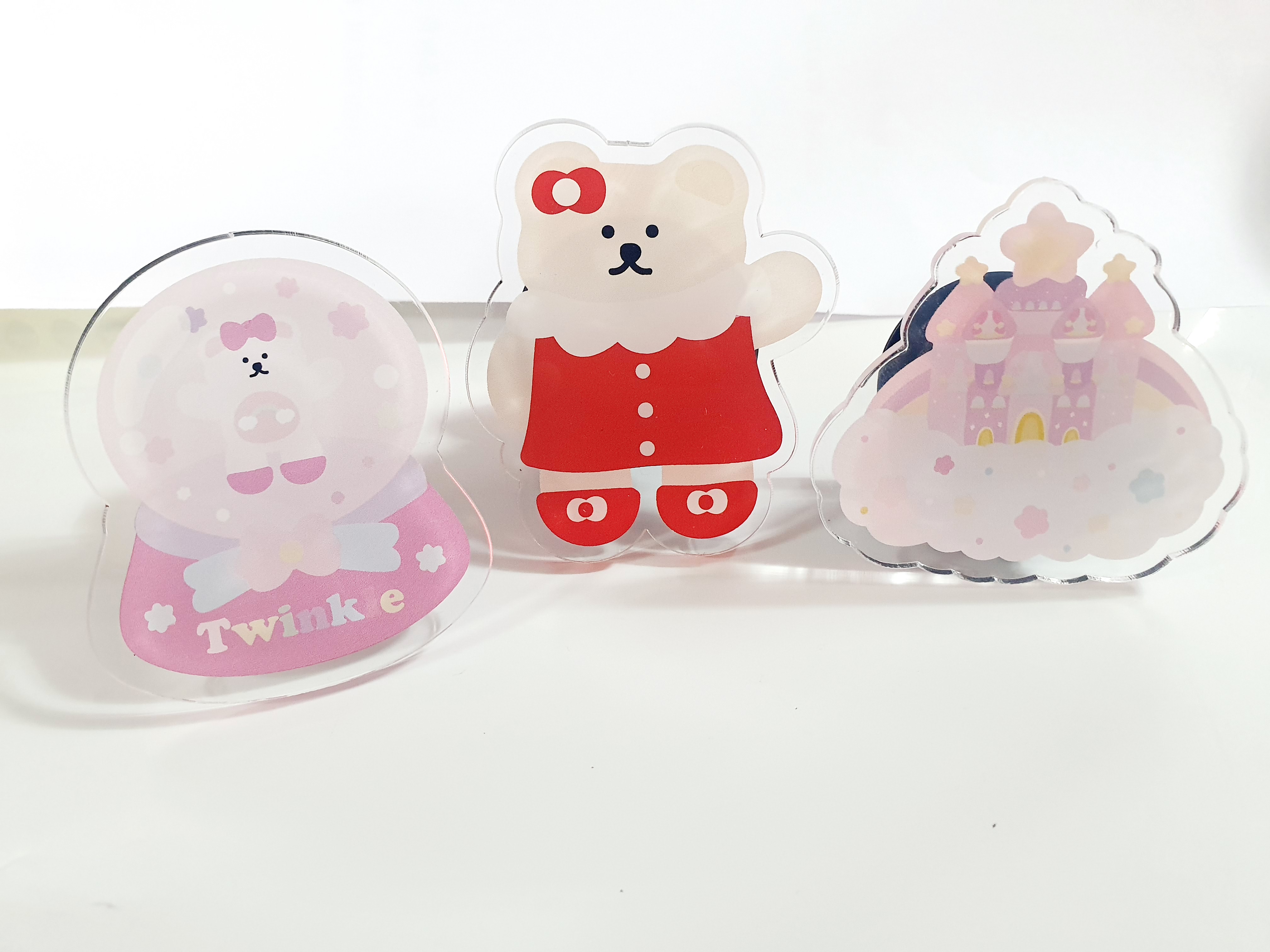 일러스트 아크릴 스마트톡 / 곰돌이 일러스트 스마트톡 / 아크릴 스마트톡 주문제작 / 스마트톡 / 스마트폰 거치대 / 굿즈제작 / UV인쇄 / 싸인테크