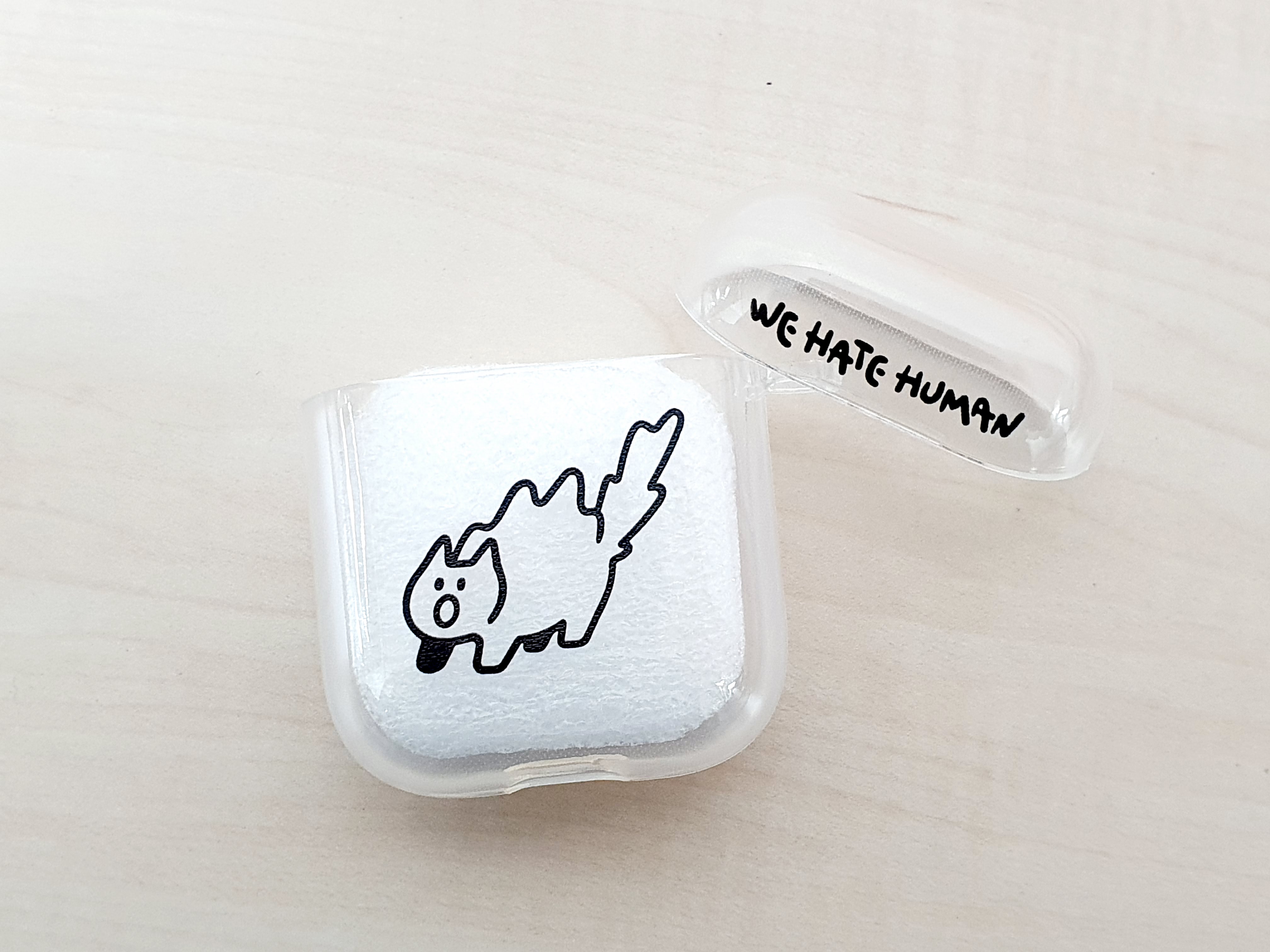 고양이 일러스트 에어팟 케이스 / 일러스트 에어팟 케이스 제작 / 투명 에어팟 케이스 제작 / 에어팟 케이스 주문제작 / 커스텀 에어팟 케이스 / 굿즈제작 / UV인쇄 / 싸인테크