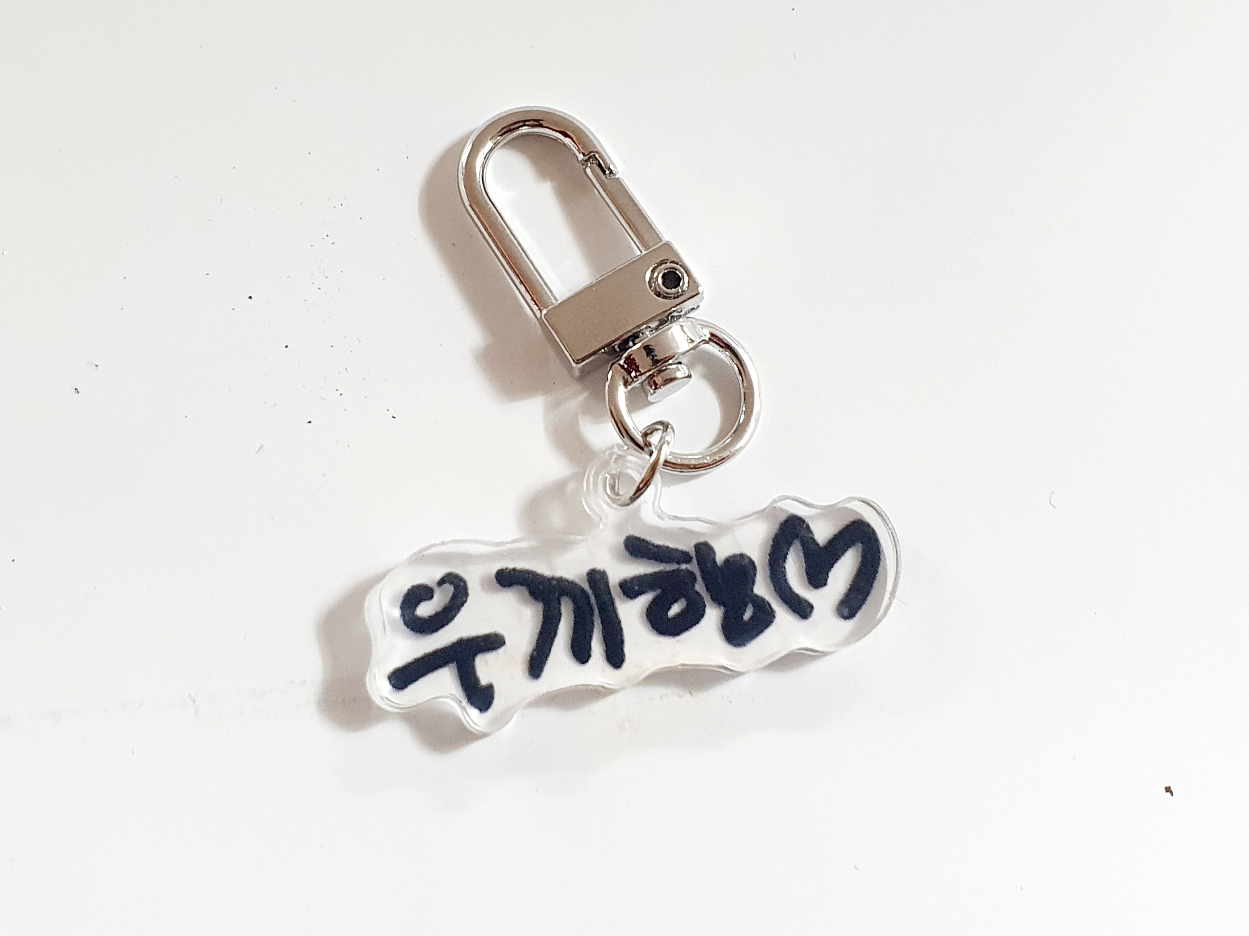 오늘 보여드릴 제품은 줄임말 우끼행으로 제작한 손글씨 키링이에요.