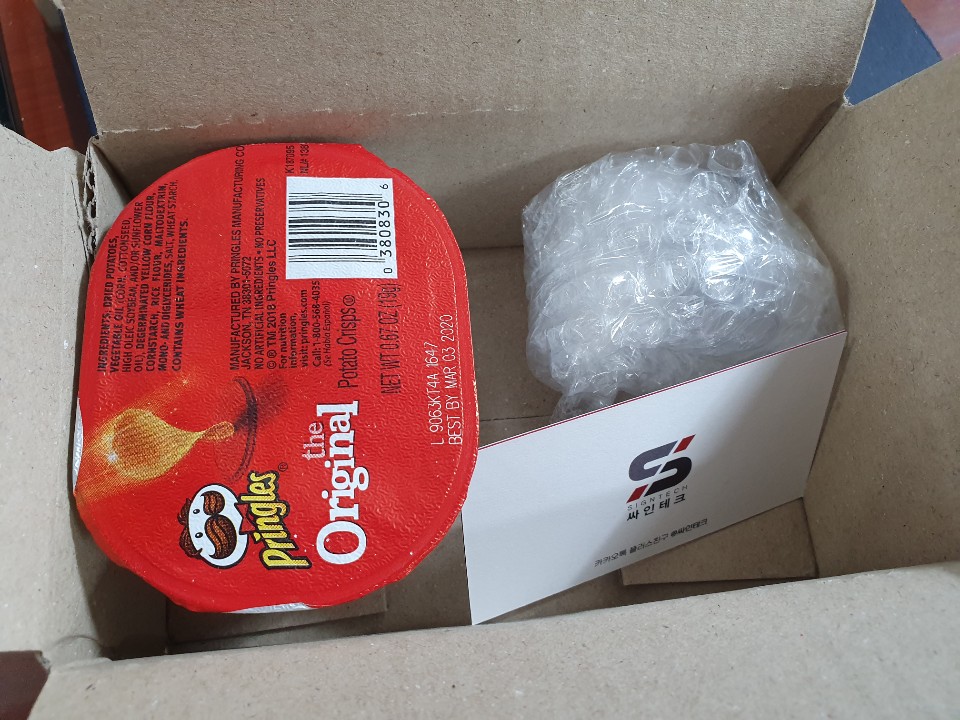 고객님의 소중한 케이스 뾱뾱이에 감싸서, 저희의 작은 뇌물(프링글스...), 명함과 함께 안전하게 발송해드렸습니다.