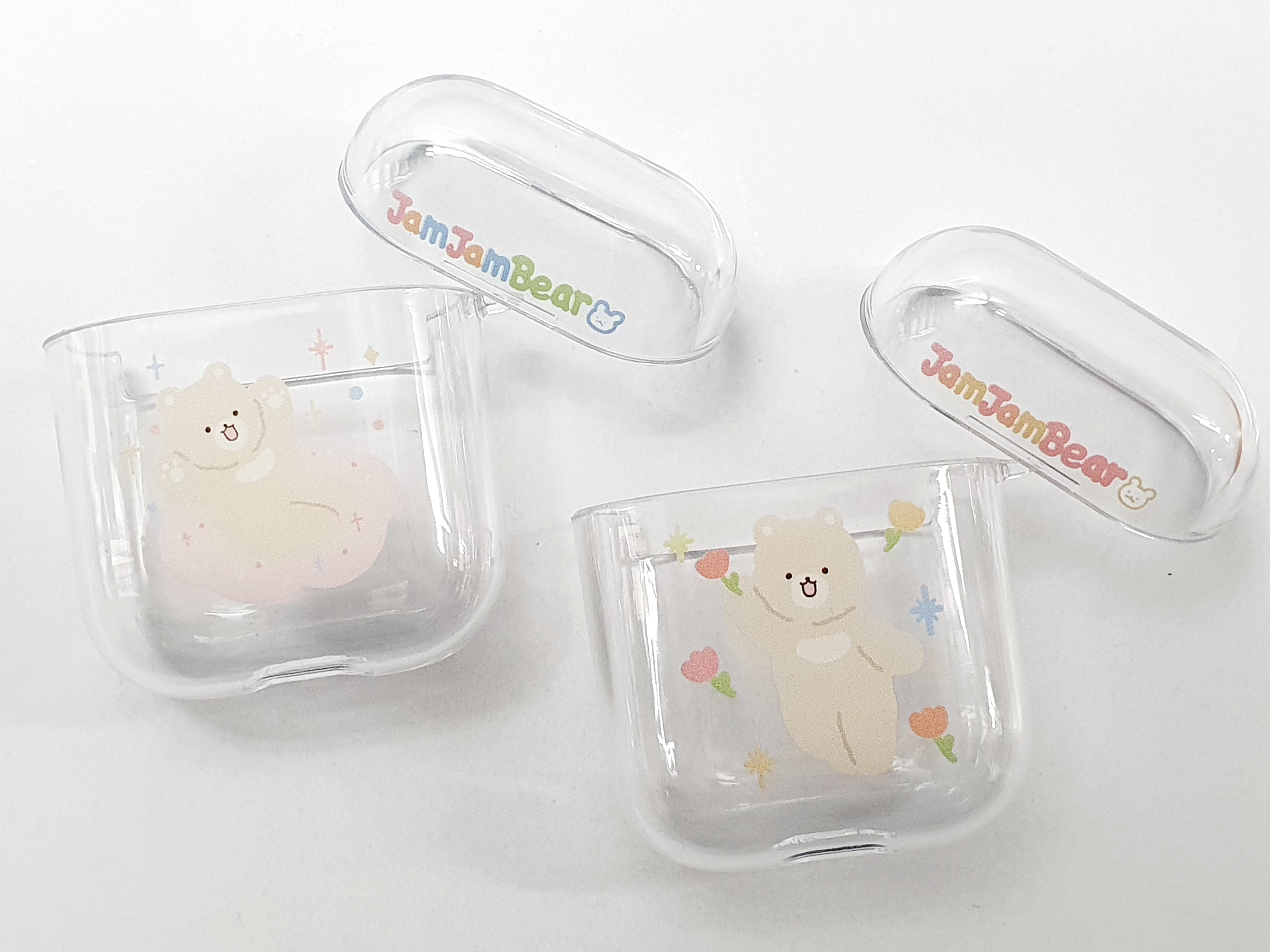 잼잼베어 일러스트 에어팟 케이스 / 에어팟 케이스 제작 / 투명 에어팟 케이스 제작 / 에어팟 케이스 주문제작 / 커스텀 에어팟 케이스 / 굿즈제작 / UV인쇄 / 싸인테크