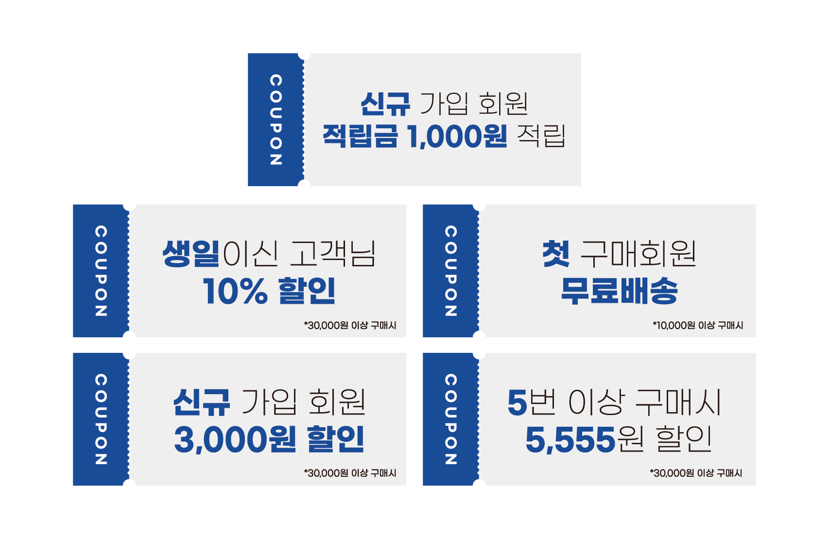 품목에 상관없이 5번 이상 구매하신 고객님께 5,555원 할인 쿠폰을 또 드립니다. :)!