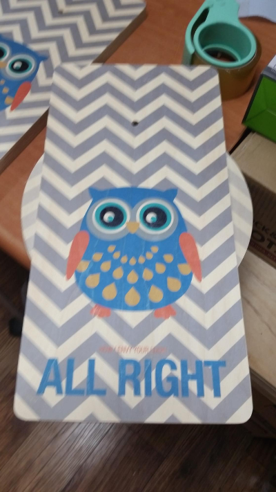 두번째 시계는 마찬가지로 지그재그 배경 패턴에 귀여운 부엉이가 그려진 시계입니다.