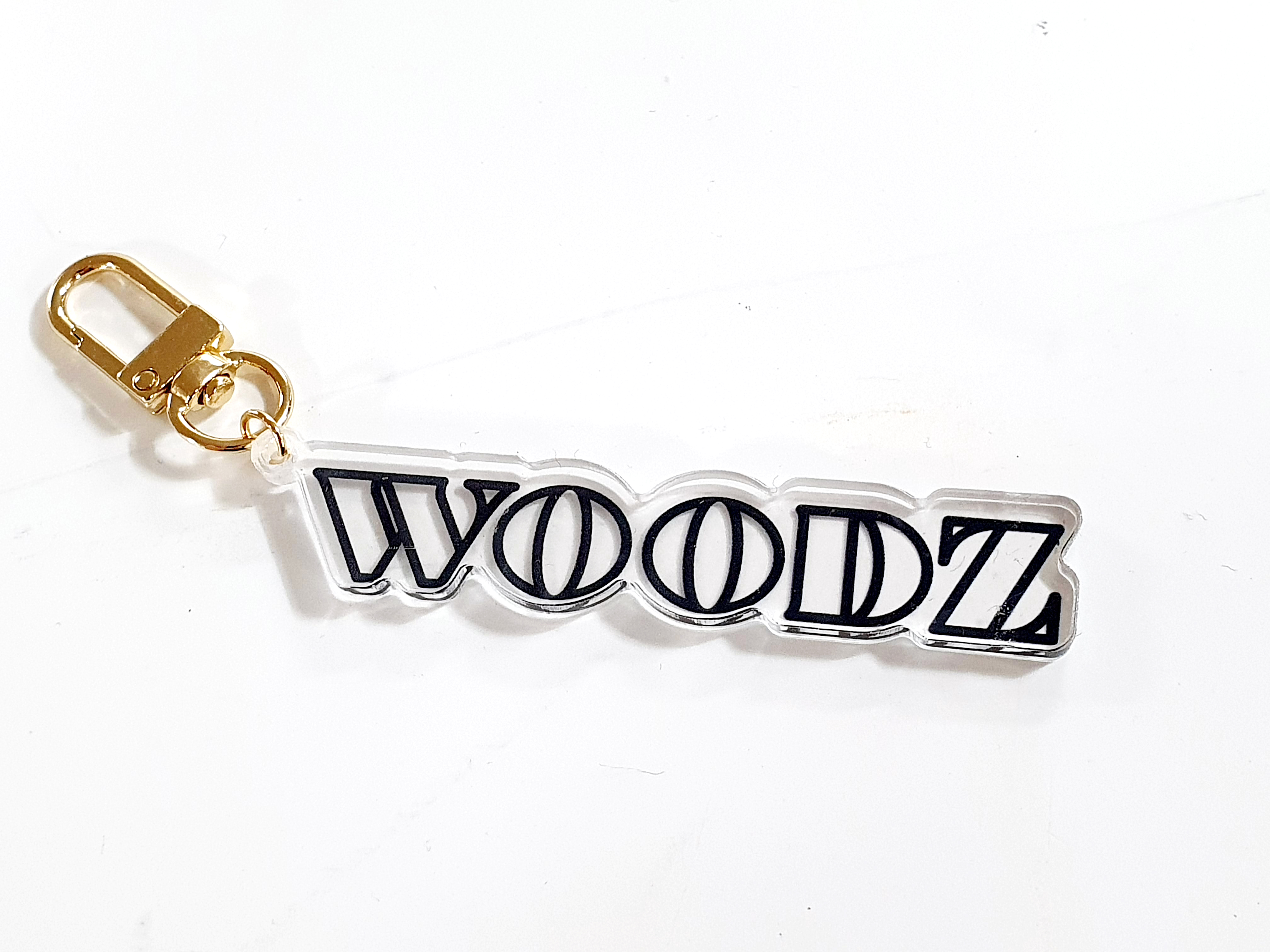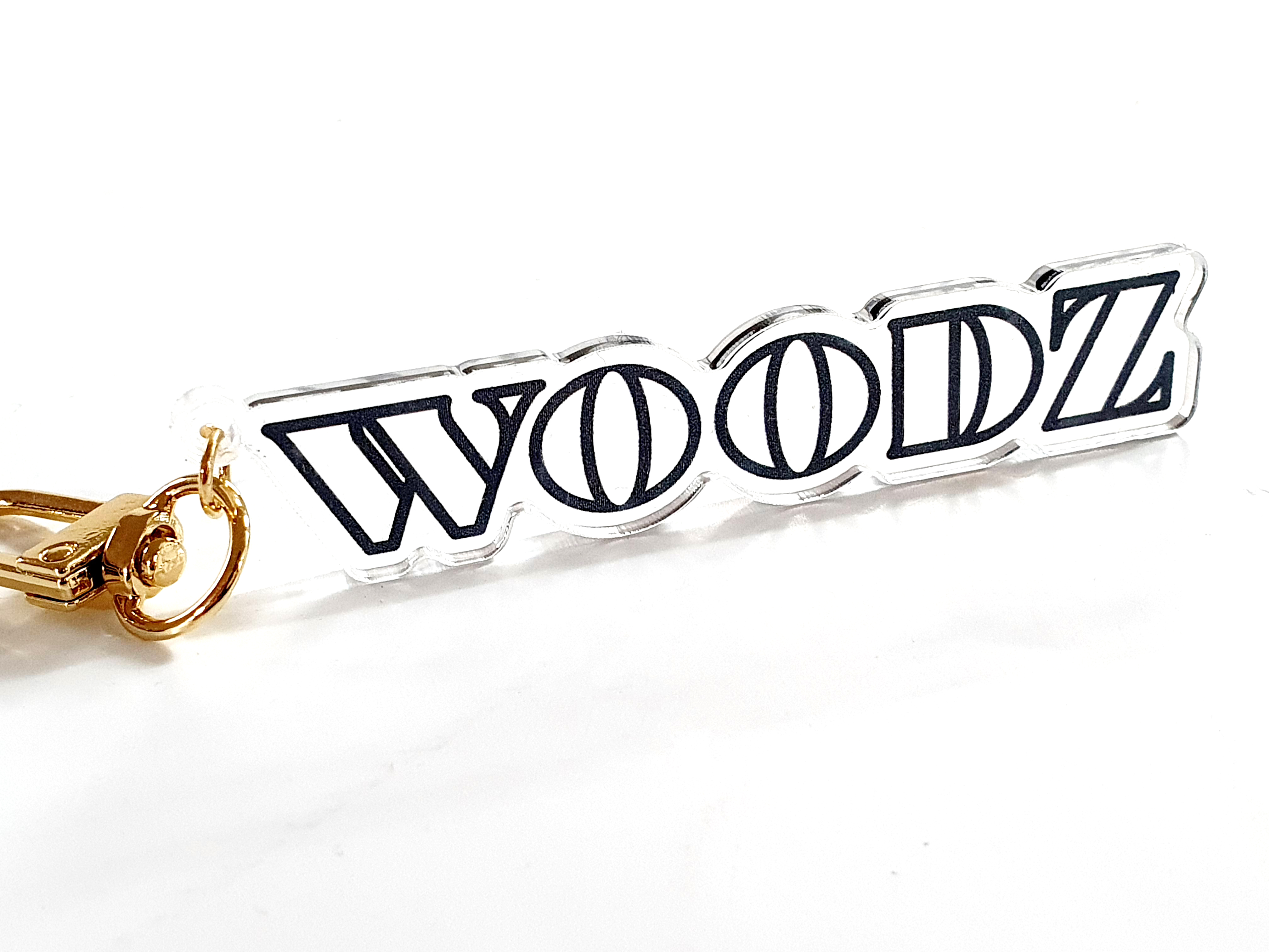 오늘 보여드릴 제품은 텍스트를 검은 테두리에 투명으로 제작한 아크릴 키링이에요.