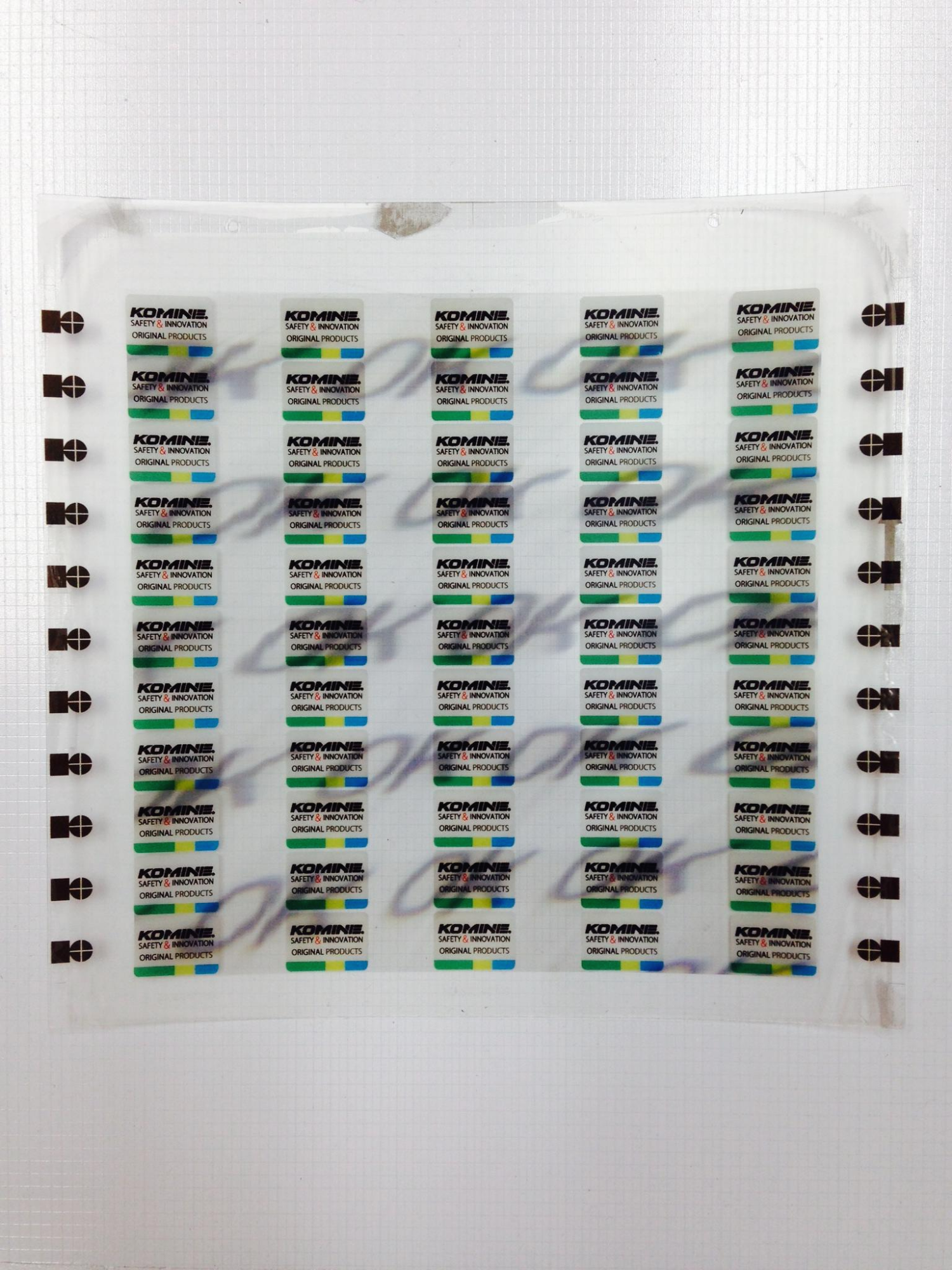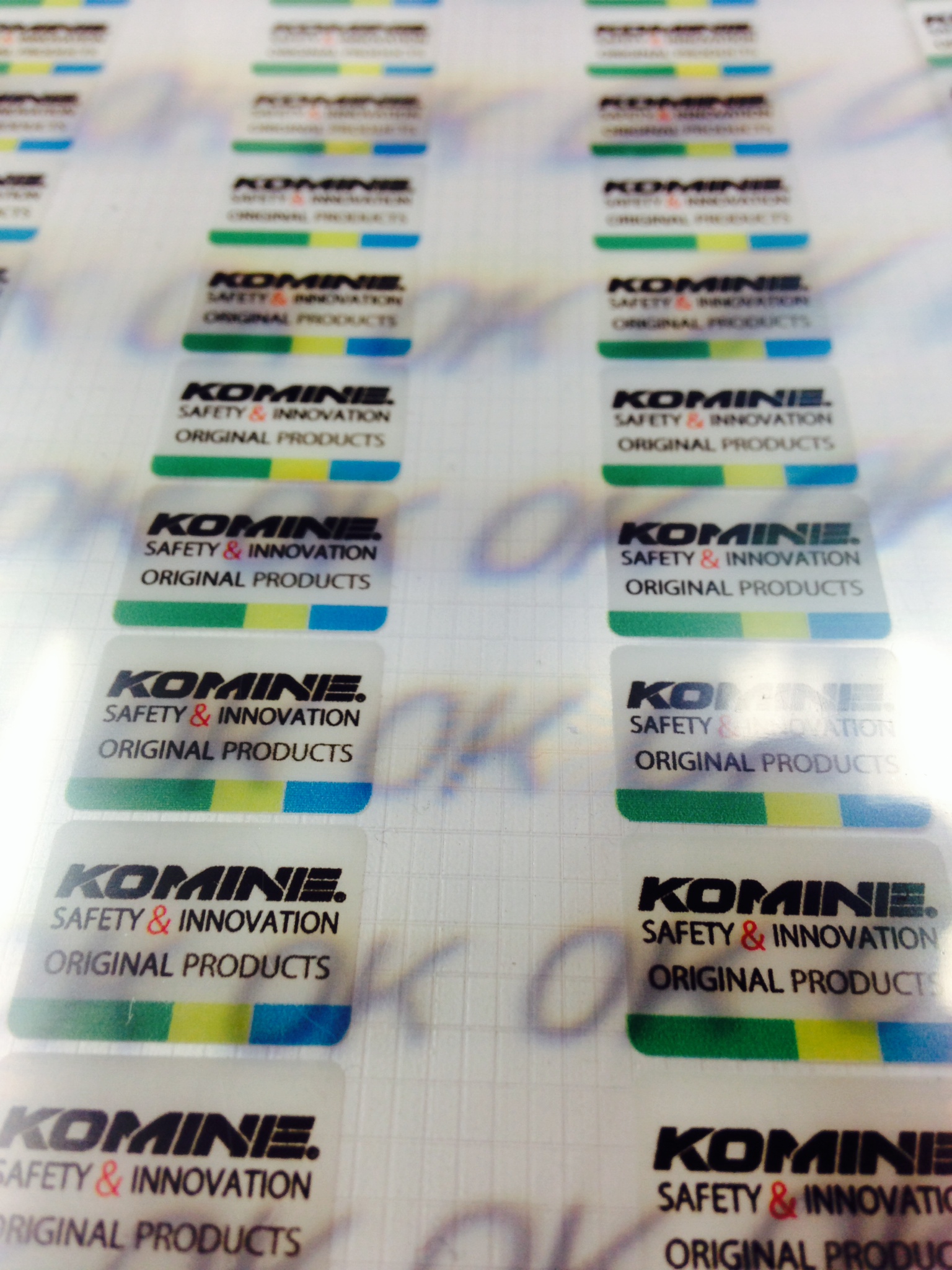 이번에 보여드릴 인쇄물은 KOMINE 라는 브랜드의 위조방지 라벨 인쇄했던 작업을 보여드리려고 해요.