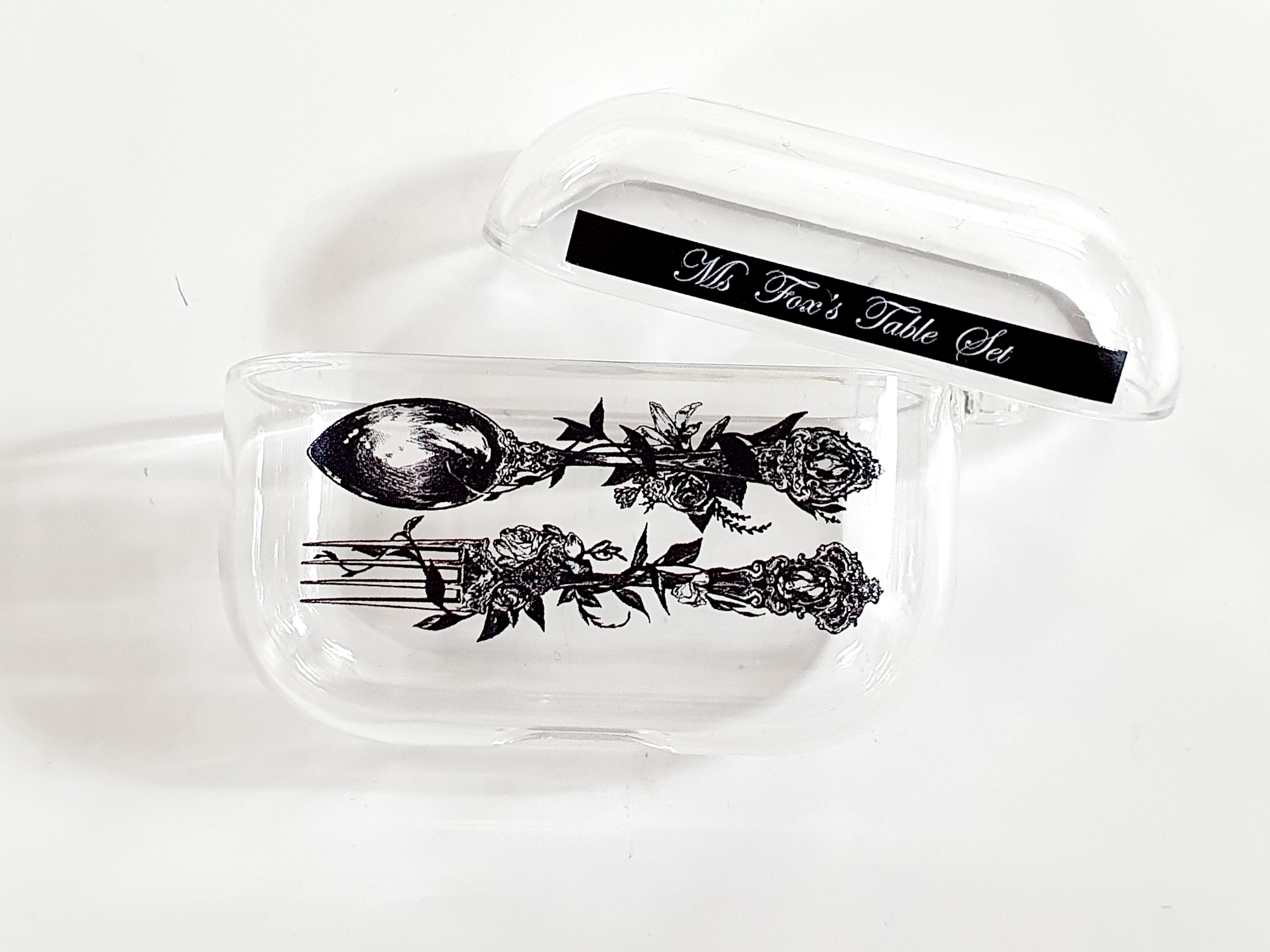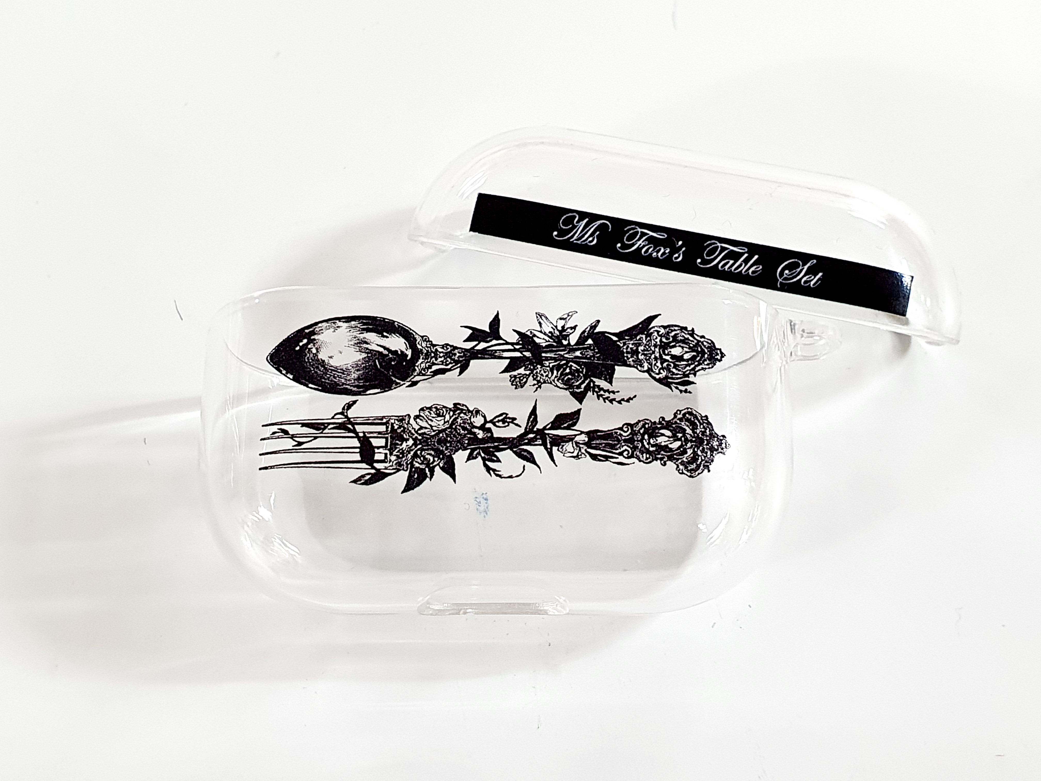 오늘 보여드릴 제품은 아름다운 수저와 포크가 그려진 에어팟 케이스에요.