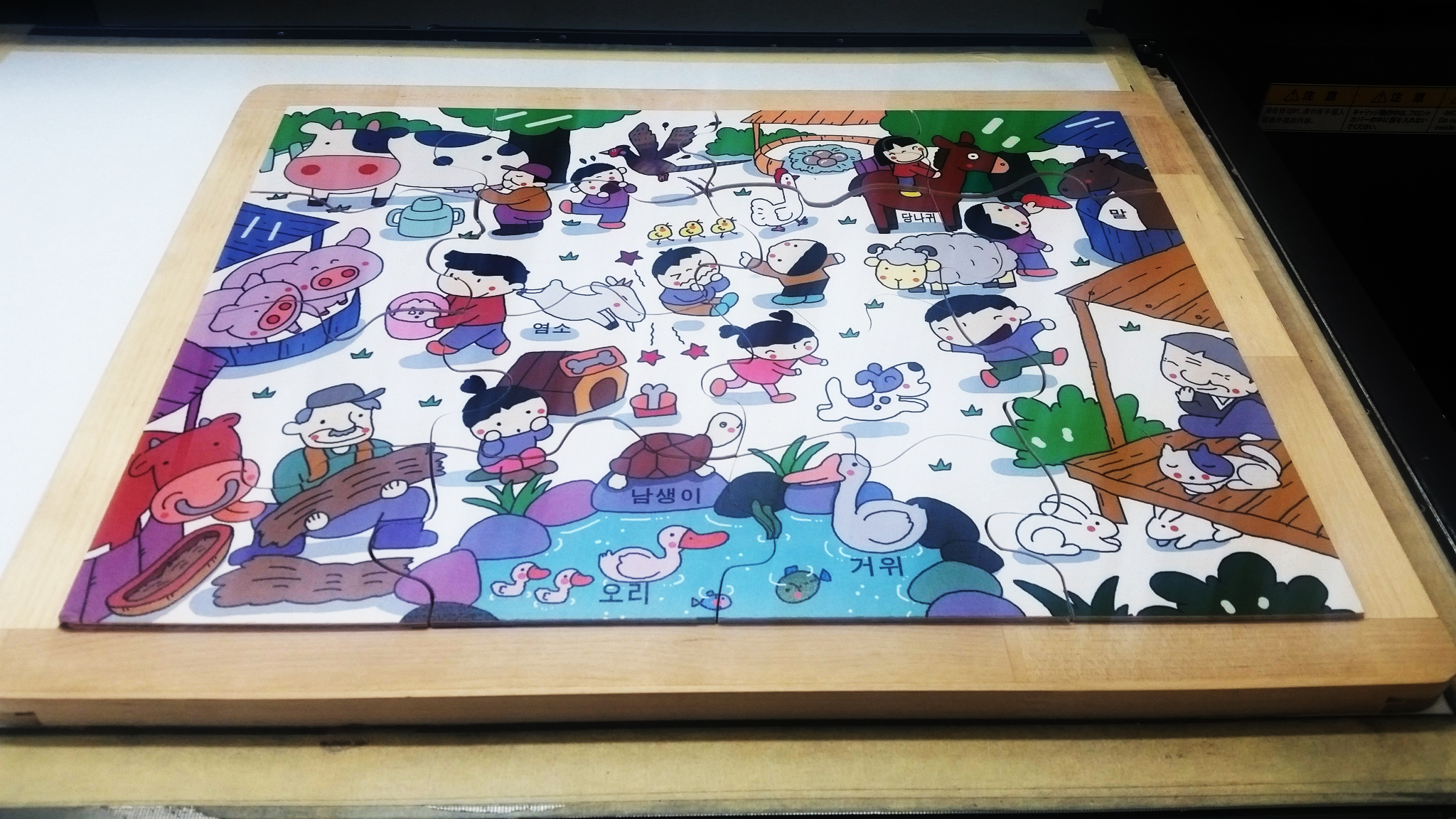 이번에 보여드릴 인쇄물은 아동용 퍼즐에 UV로 귀여운 동물 그림을 인쇄했던 작업이에요. :)