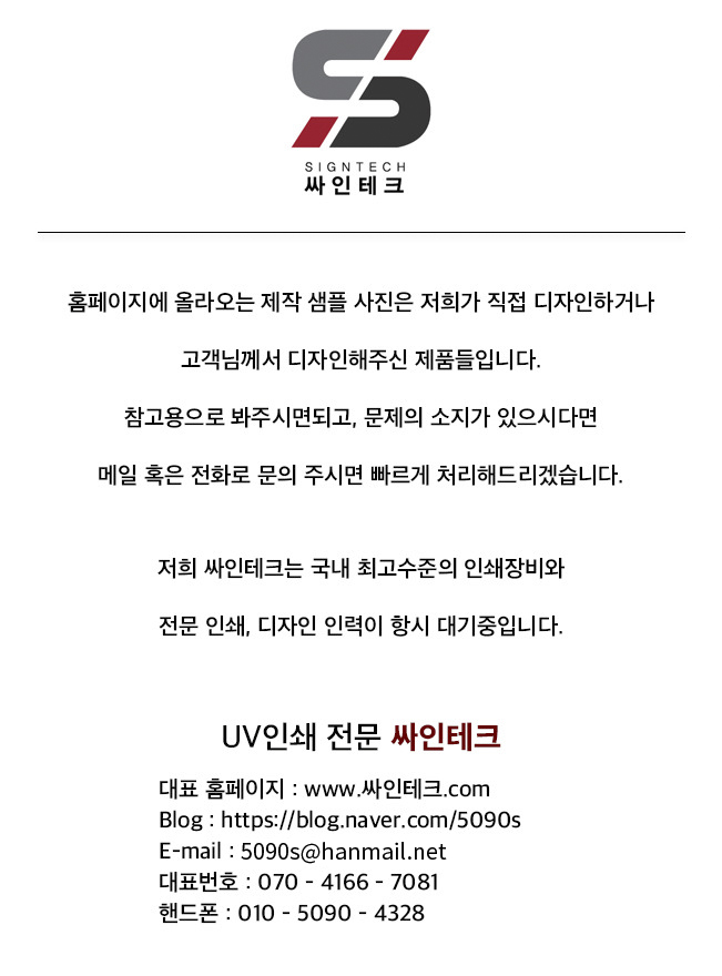 저희 싸인테크는 대량 인쇄 전문이지만 소량 제작도 가능합니다 :)