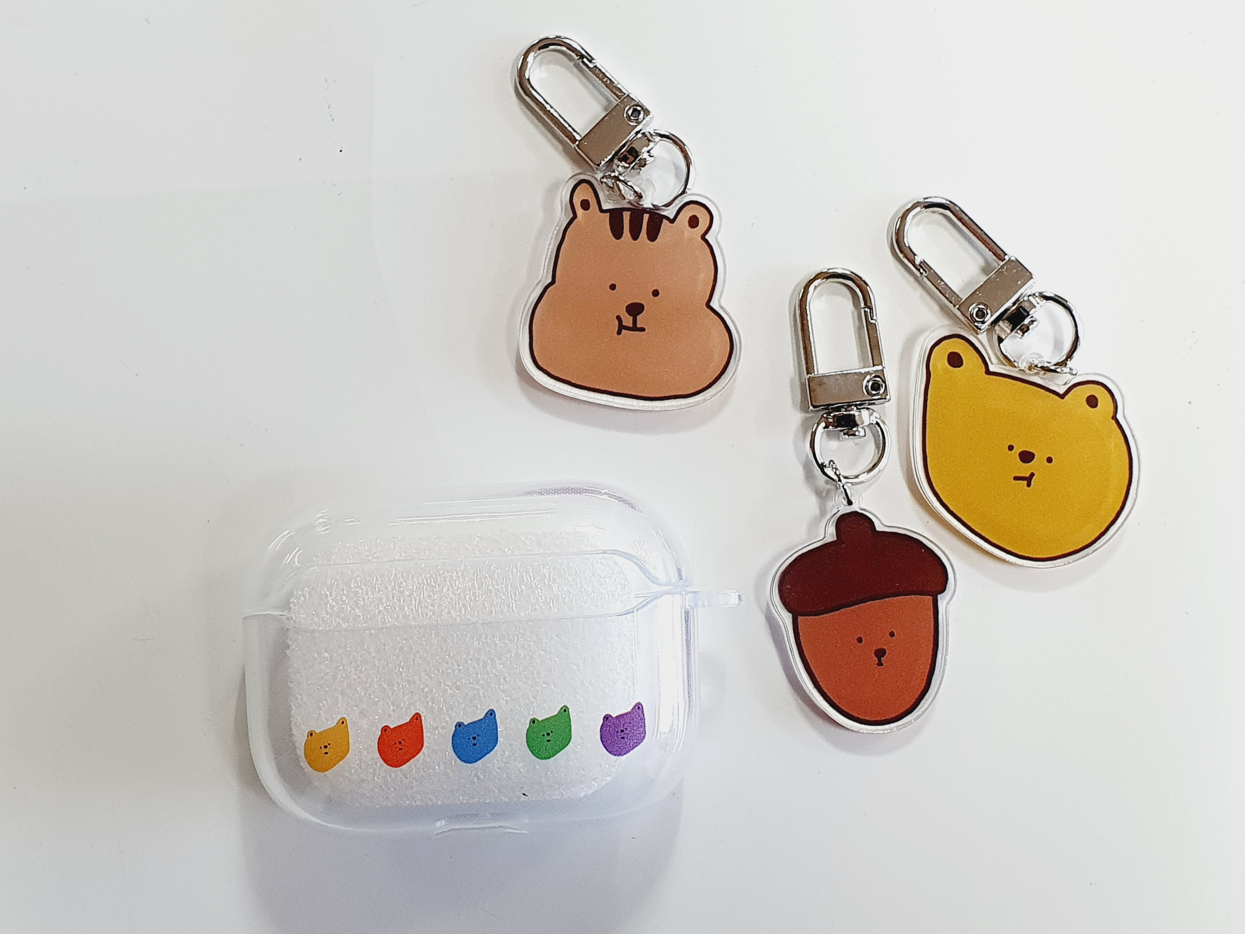 에어팟케이스 앞면에는 도토리랑 다람쥐랑 곰돌이 두마리를 인쇄했구요