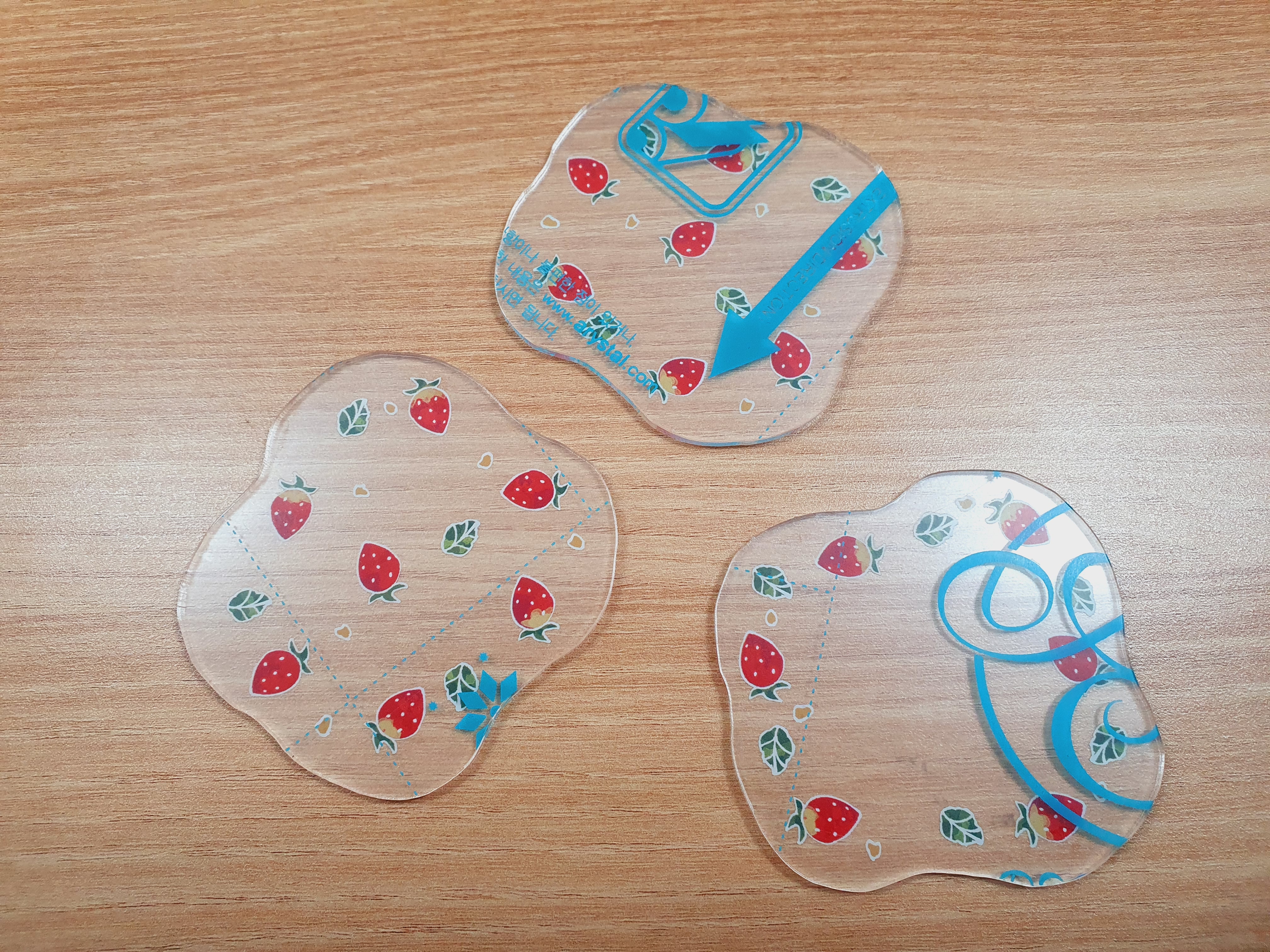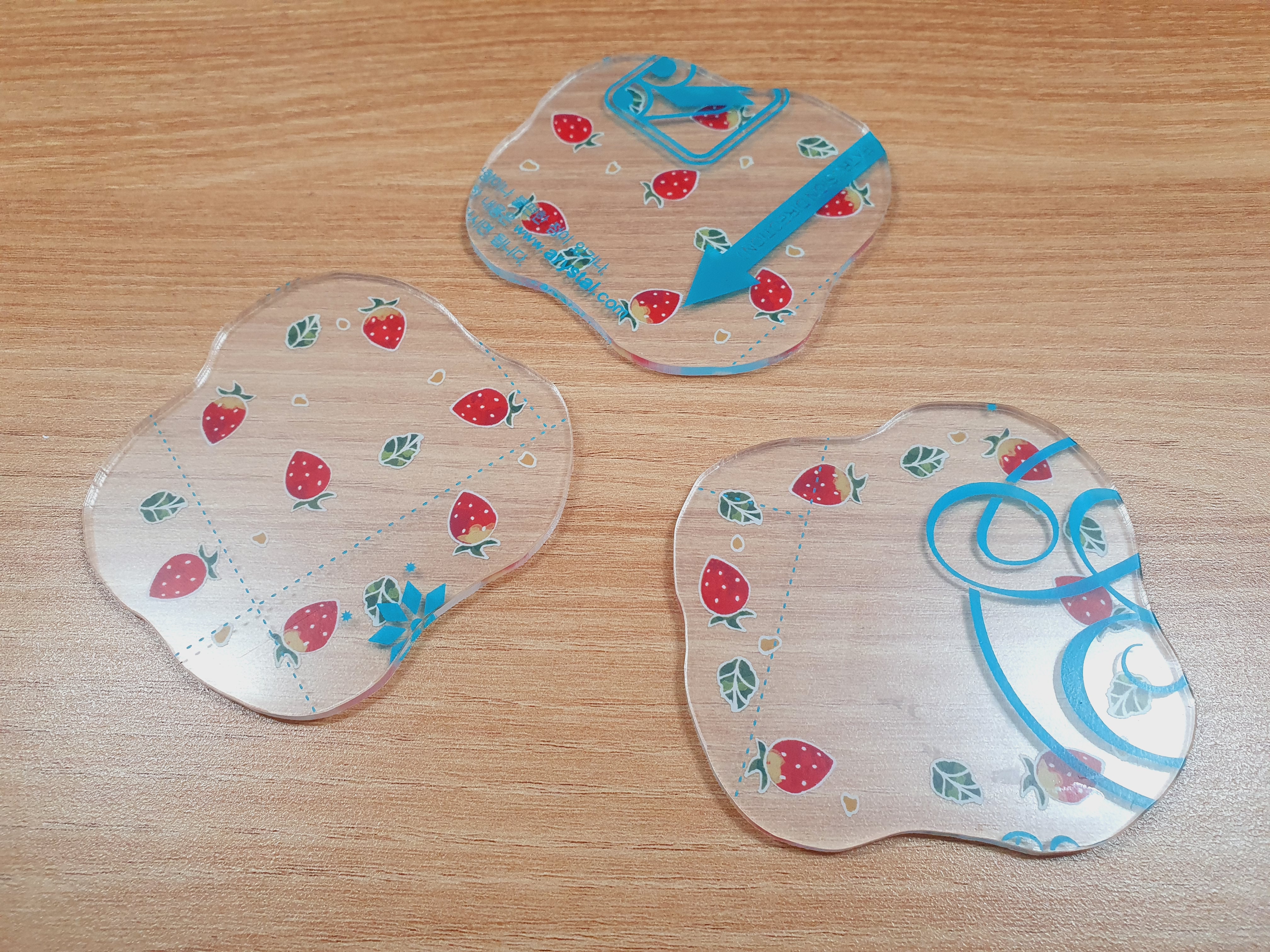 딸기가 인쇄된 자유형모양의 아크릴코스터에요