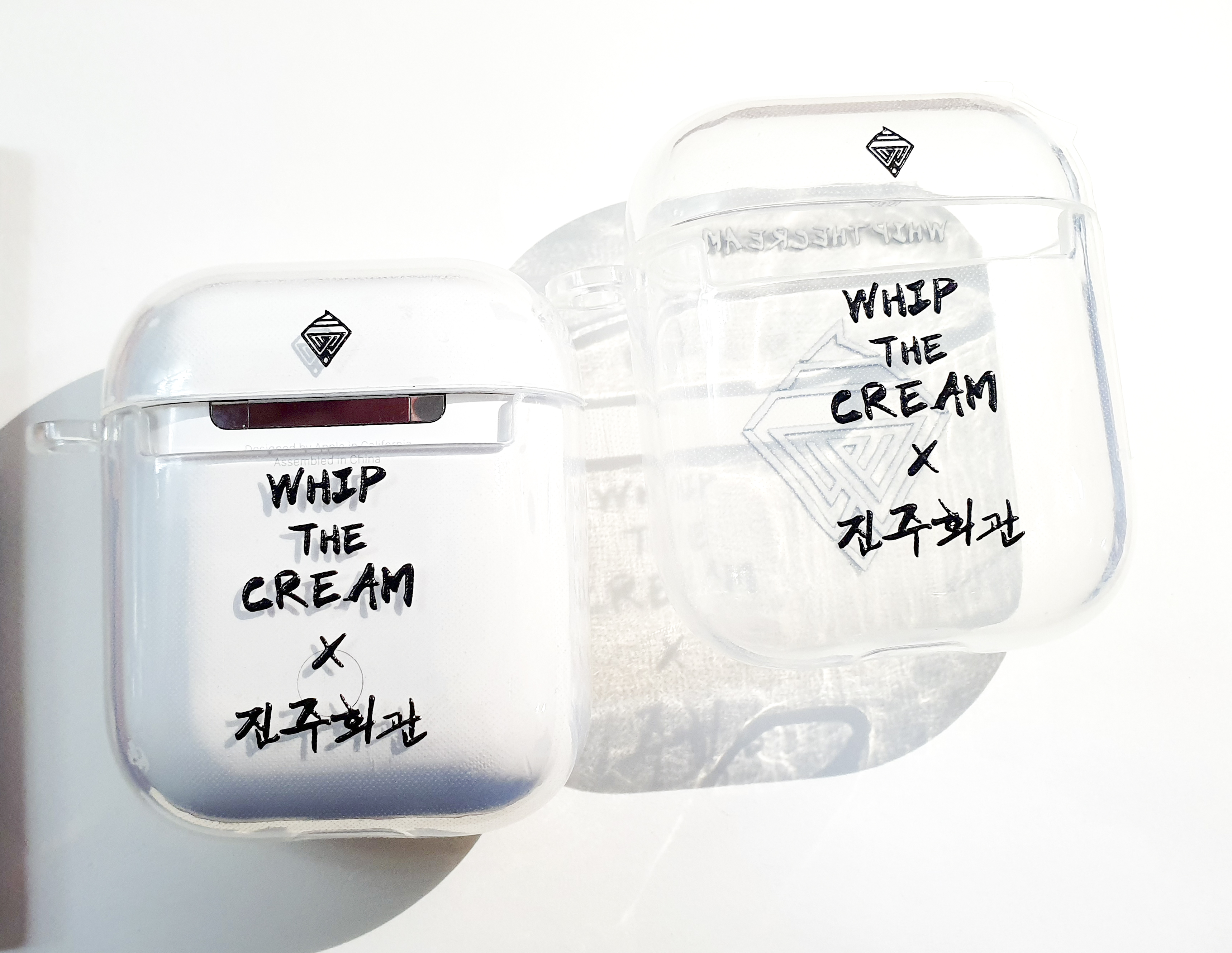 뒷면엔 뚜껑에 이미지가 조그맣게 들어가고 whip the cream X 진주회관 글씨가 크게 적혀있습니다.