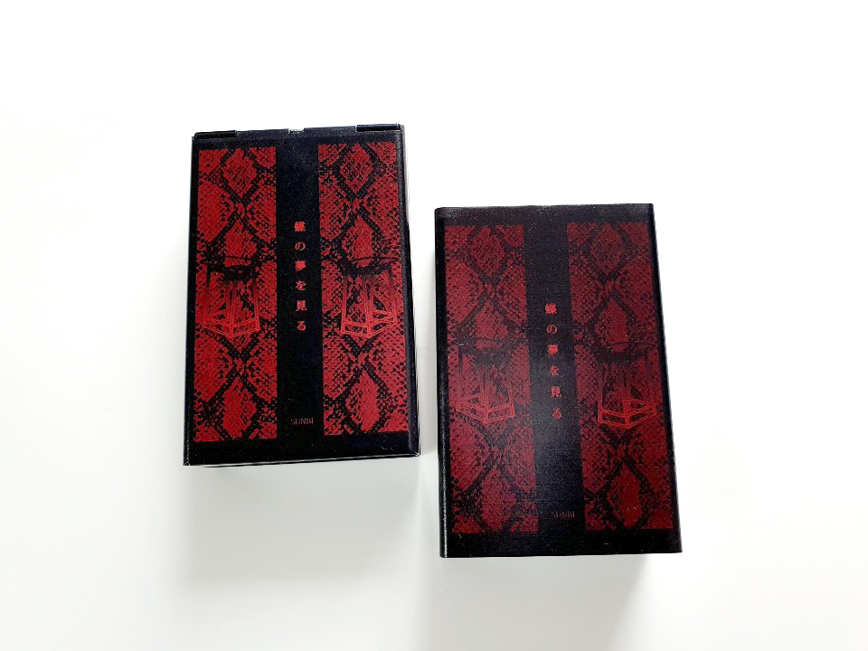 검은색 케이스에 뱀피무늬와 책상? 같은 이미지가 합성된 그림이에요.